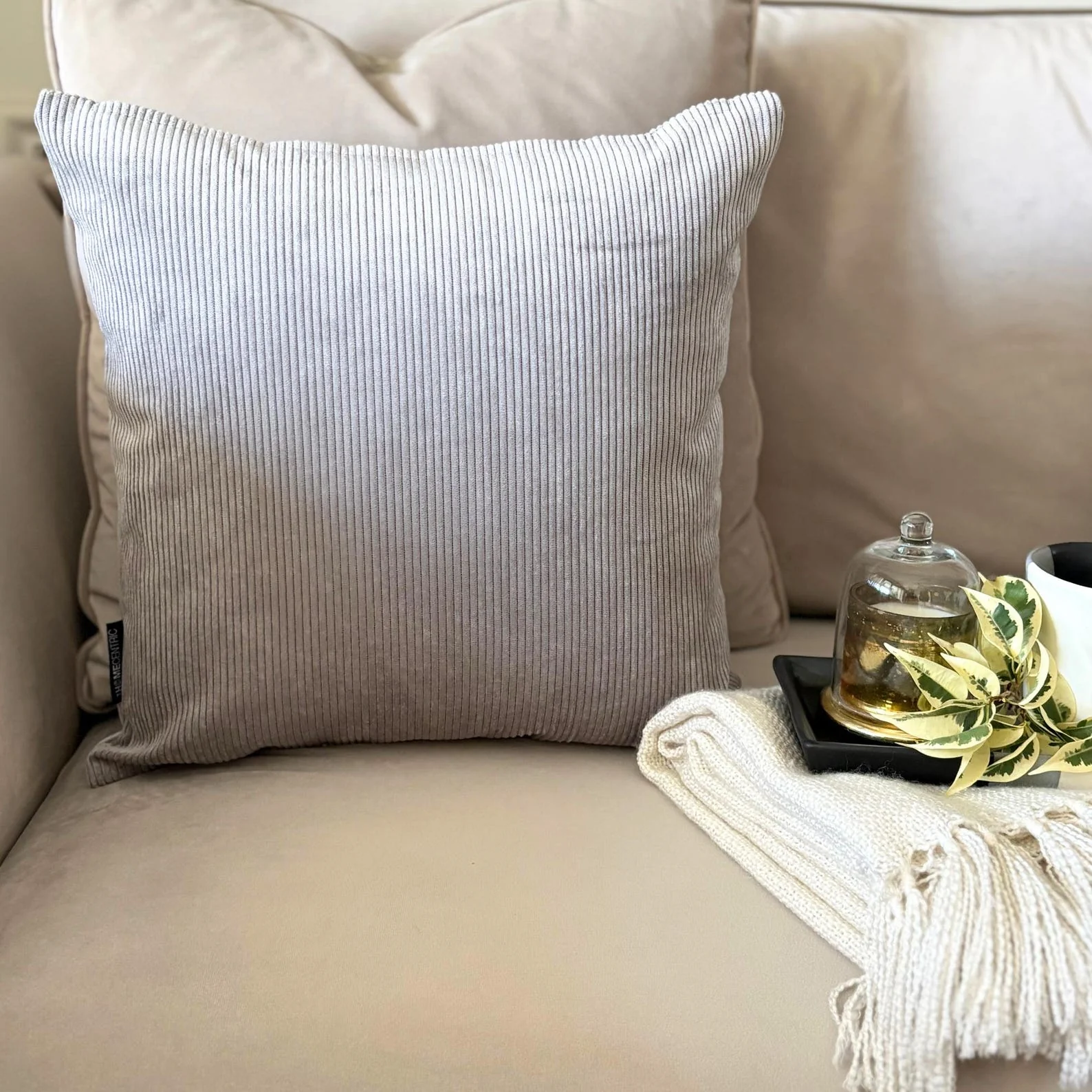 Light Gray Velvet Throw Pillow Cover - Light Gray Cords